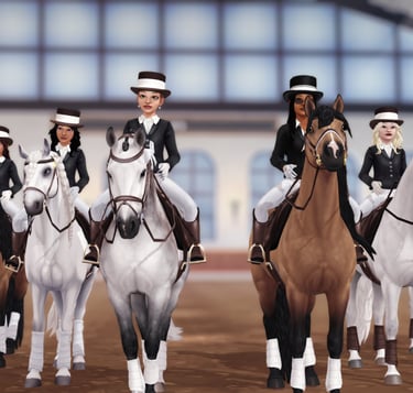 I Dizzy Stars har vi hittills ägnat mycket tid till allt från realistiska ridlektioner till mer avslappnade event, aktiviteter och spontana pratstunder. Vi sysslar även mycket med både kadrilj och racing!
